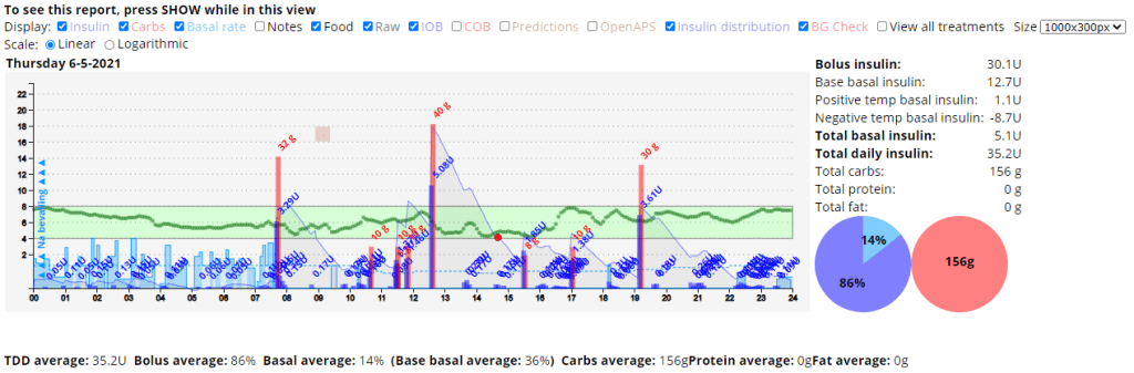 At this point in time, a perfect day is not a goal, but a very nice confirmation of the path taken. You see more details of this day below from our Nightscout environment.